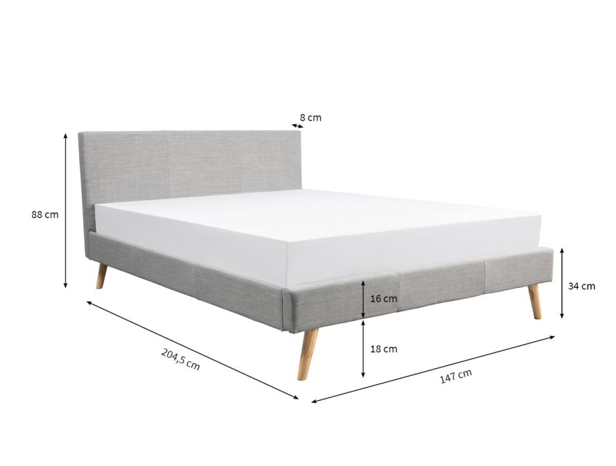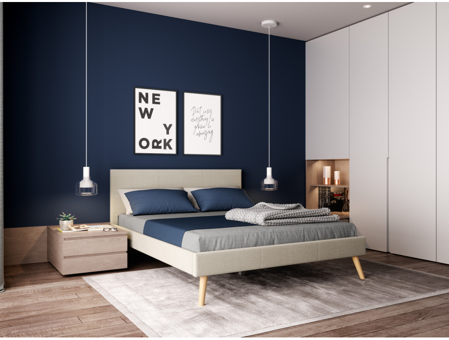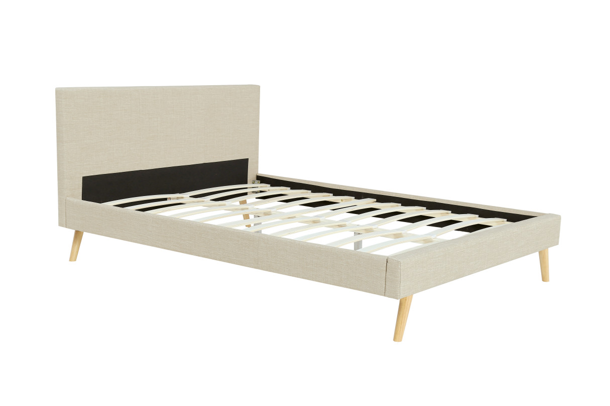 BJORNA – Cadre de lit style scandinave en tissu avec pieds bois – Beige