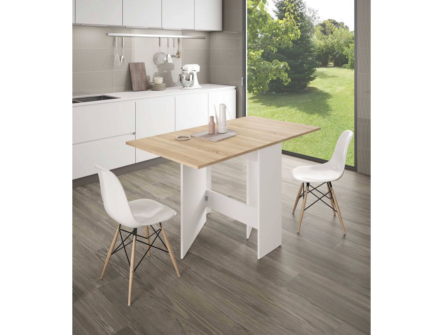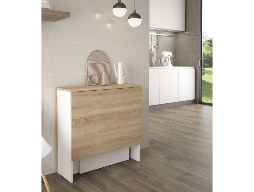 ROSE – Table auxiliaire extensible L31/140 x P77 cm – Blanc/chêne